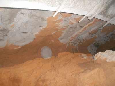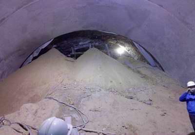 圖2 上白隧道水平旋噴未施工時洞內漏砂現場
